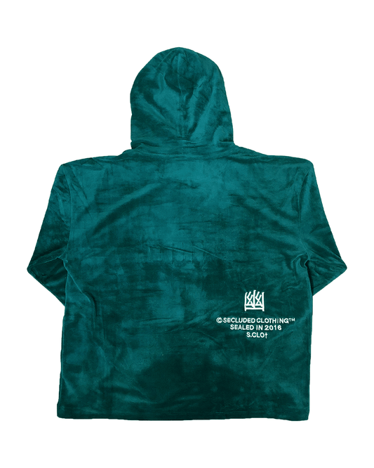 Secluded Panthera Velour Hoodie Emerald Green